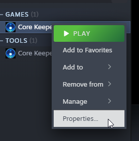 <figure><img src="https://2243841139-files.gitbook.io/~/files/v0/b/gitbook-x-prod.appspot.com/o/spaces%2FfgyOx4rs392HNuE1NILG%2Fuploads%2FIuDnDDhVzDesJkgTm2Kj%2Fimage.png?alt=media&#x26;token=456af860-3278-4c84-9782-d57213089fd3" alt=""><figcaption><p>Accessing the game's properties in Steam</p></figcaption></figure>